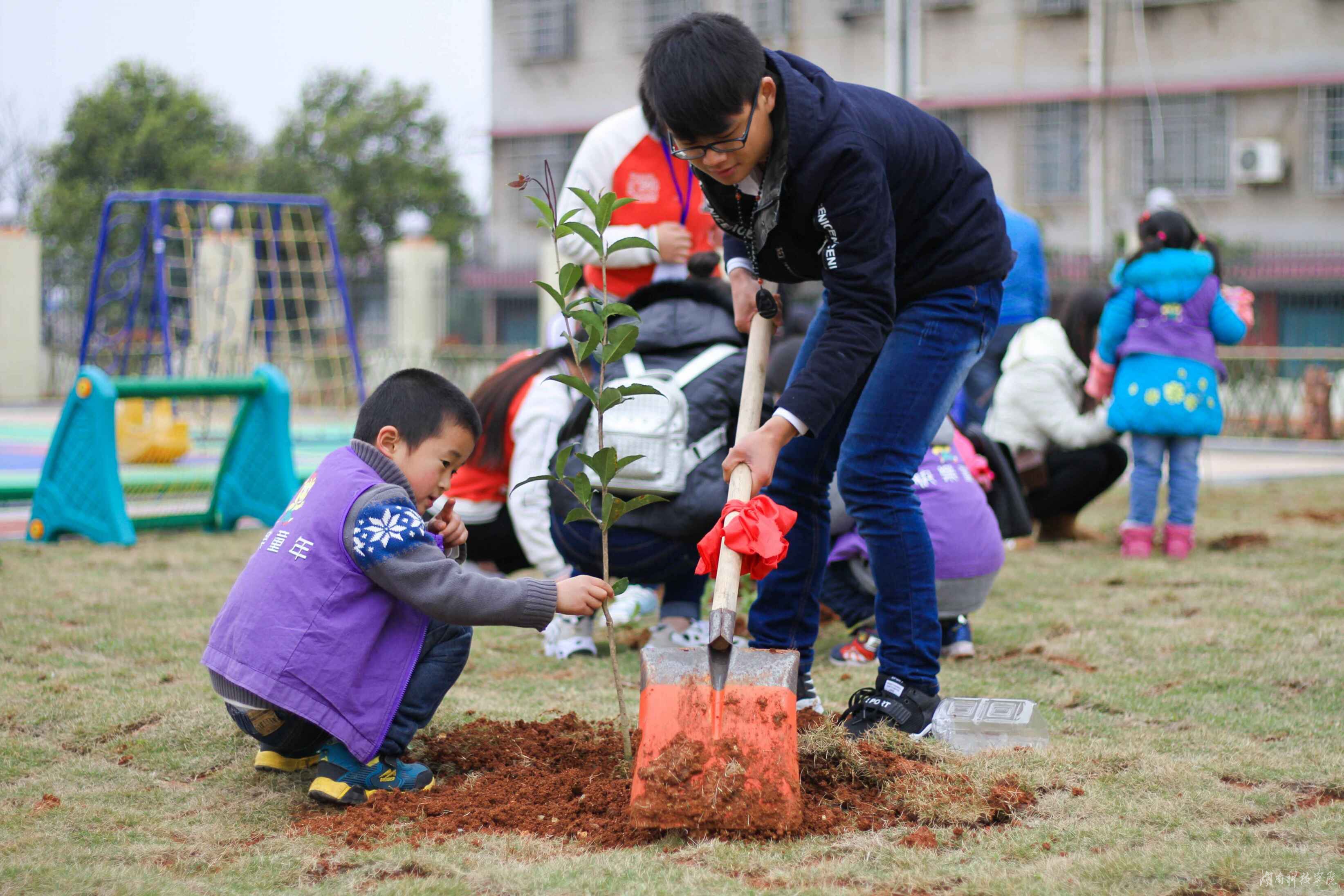 电子与信息工程学院服务团:携手科苑幼儿园小朋友共同植绿。时间:3月12日,地点:爱体育网页版在线登录。