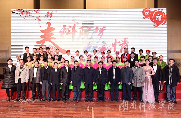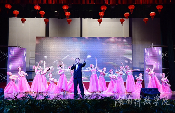 校领导陈弘、曾宝成、唐艳明、宋宏福、彭立威、郑山明、李常健、吴小林、程智开、袁先友、陈仲庚应邀出席晚会,并为全校师生激情演唱《龙的传人》、《娄山关》。