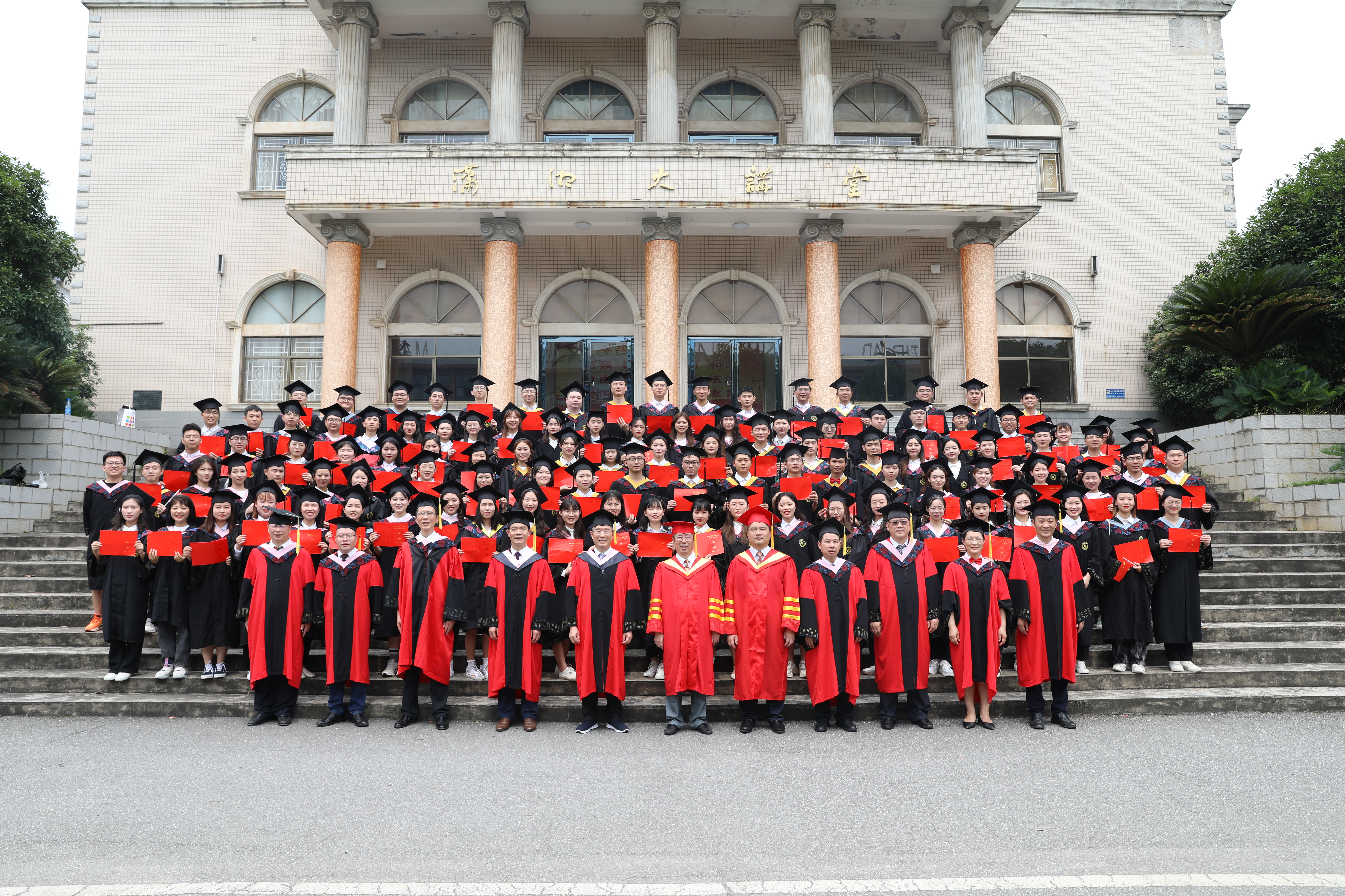 全体校领导和与会师生全体起立,齐唱《潇湘之歌》,用持久不息的掌声和爱生如子的深情目送毕业生离开会场,奔赴祖国最需要的地方。校领导与省级优秀毕业生合影留念。