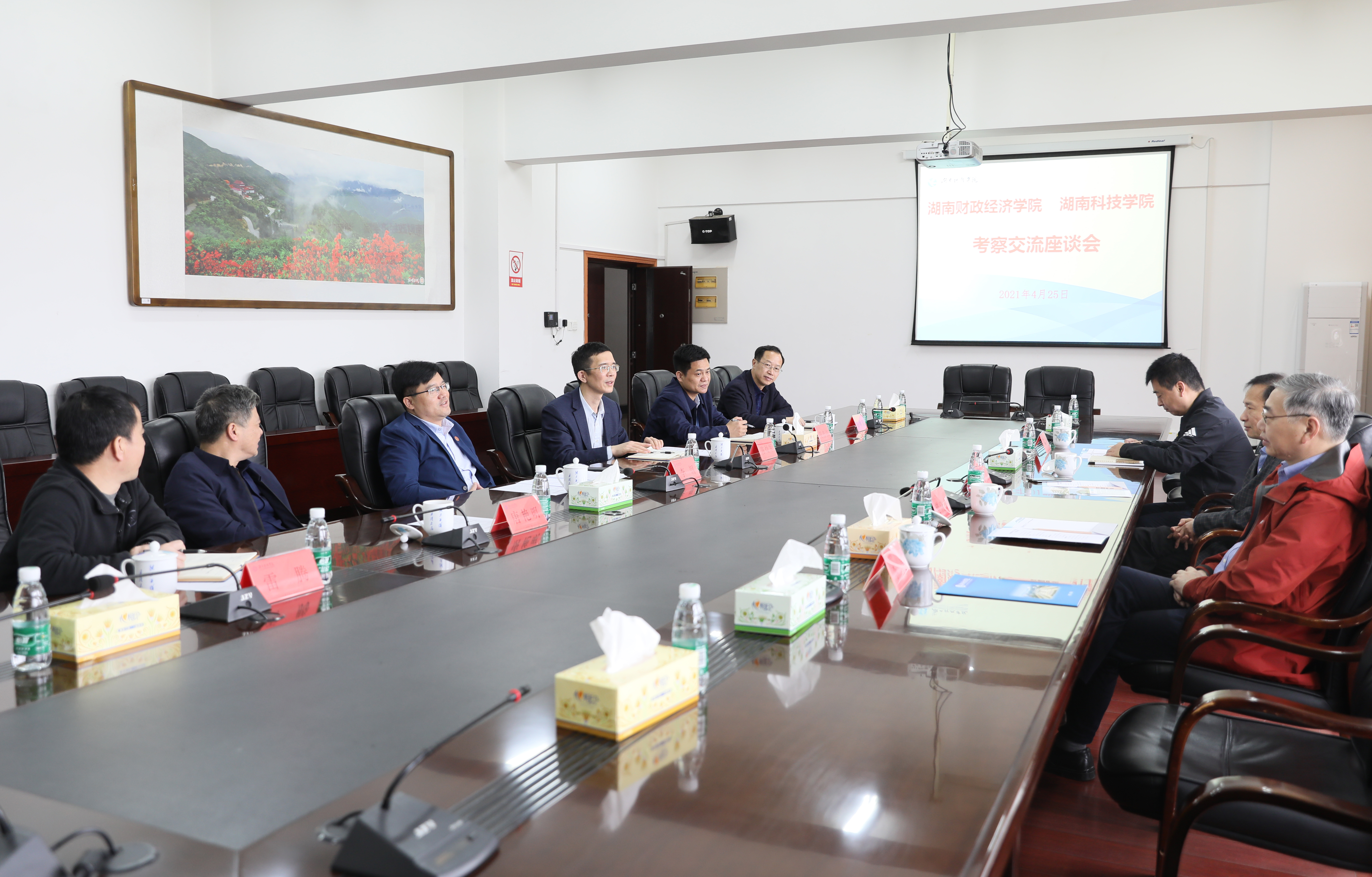 本网讯 4月25日上午,湖南财政经济学院工会主席晏金平、分管校友工作校级领导樊晓平一行来校考察交流。党委副书记、校长李钢,党委委员、纪委书记陈灿军,校级领导唐艳明及党政办、工会、校友办负责人参加交流座谈。