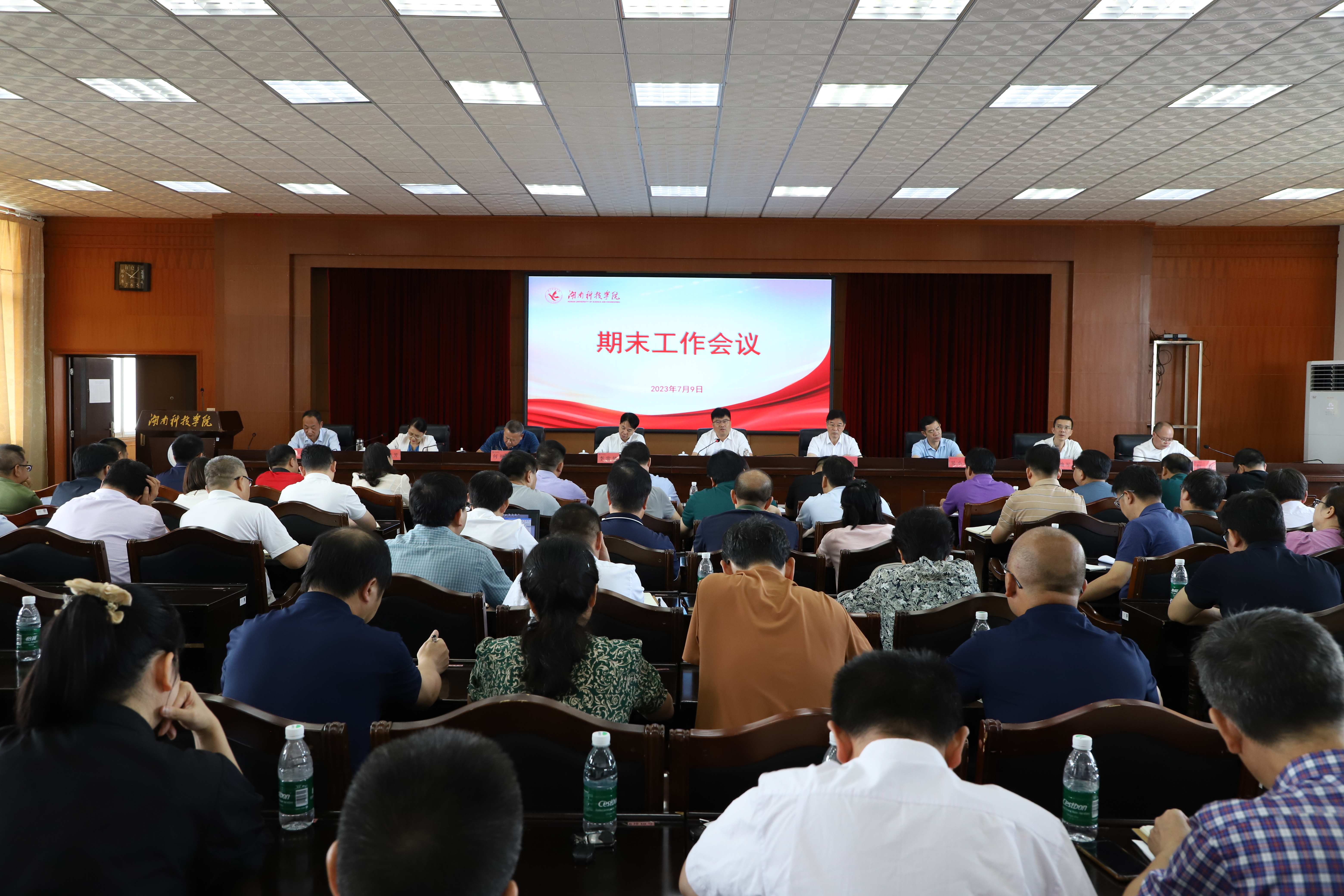 本网讯 7月9日,学校召开2023年上学期期末中层干部大会,党委副书记、校长李钢,党委副书记宋宏福,校领导李常健、吴小林、何福林、陈灿军、郑银芳、何海,党委委员、组织部长杨涛以及全体中层干部参加会议。