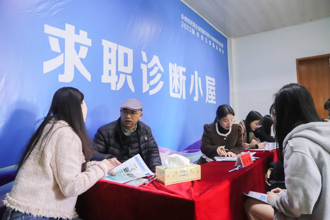 “信息比较混乱,重点不够突出,建议把实习经历写得有针对性一些!”招聘会现场的“求职诊断小屋”专区格外惹人关注,老师们耐心地为毕业生们提供“简历诊断”,对简历内容进行一对一的分析、诊断,为毕业生找到心仪岗位提供“助攻”。现场共有327名学生前来咨询。