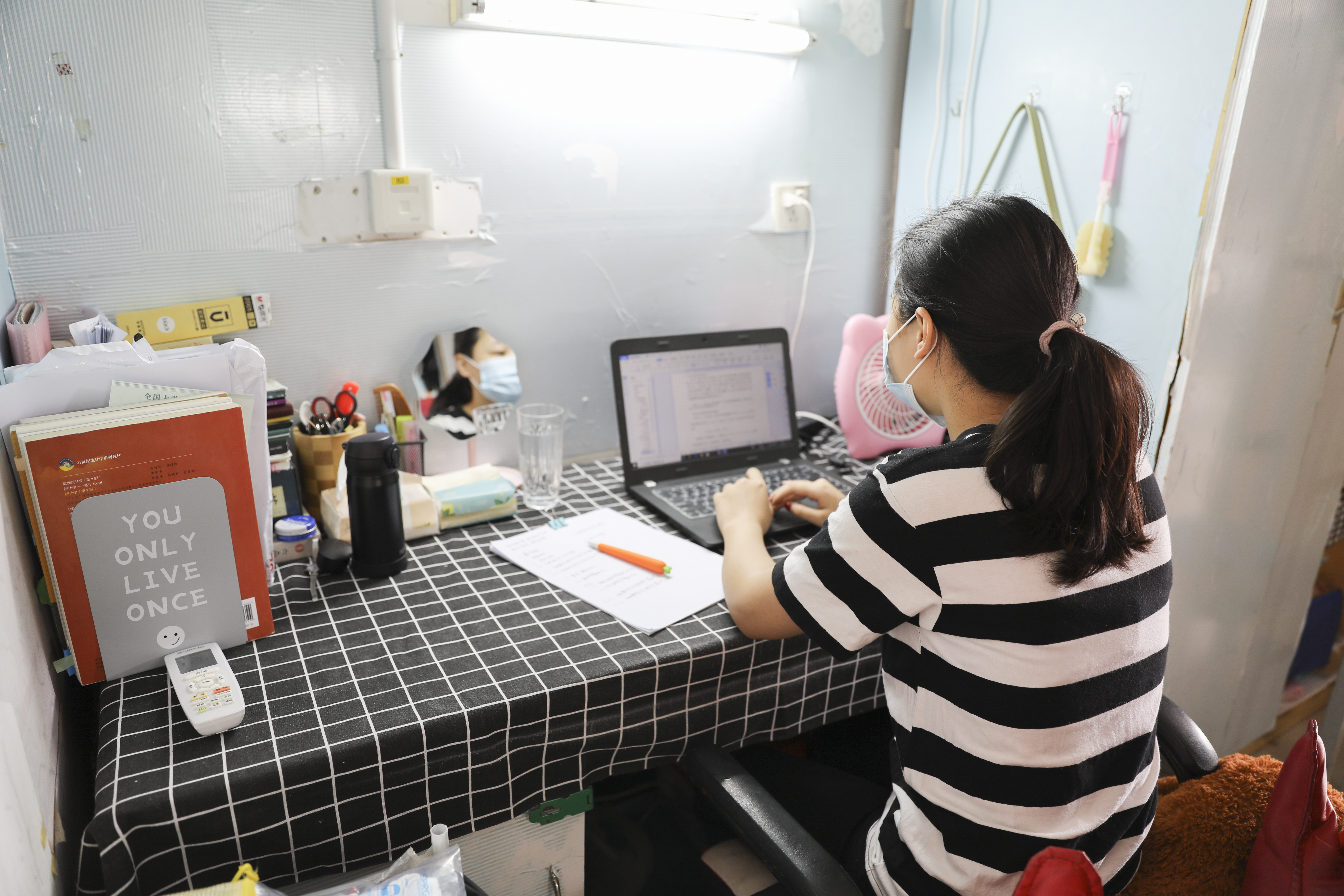 学生在寝室准备毕业论文