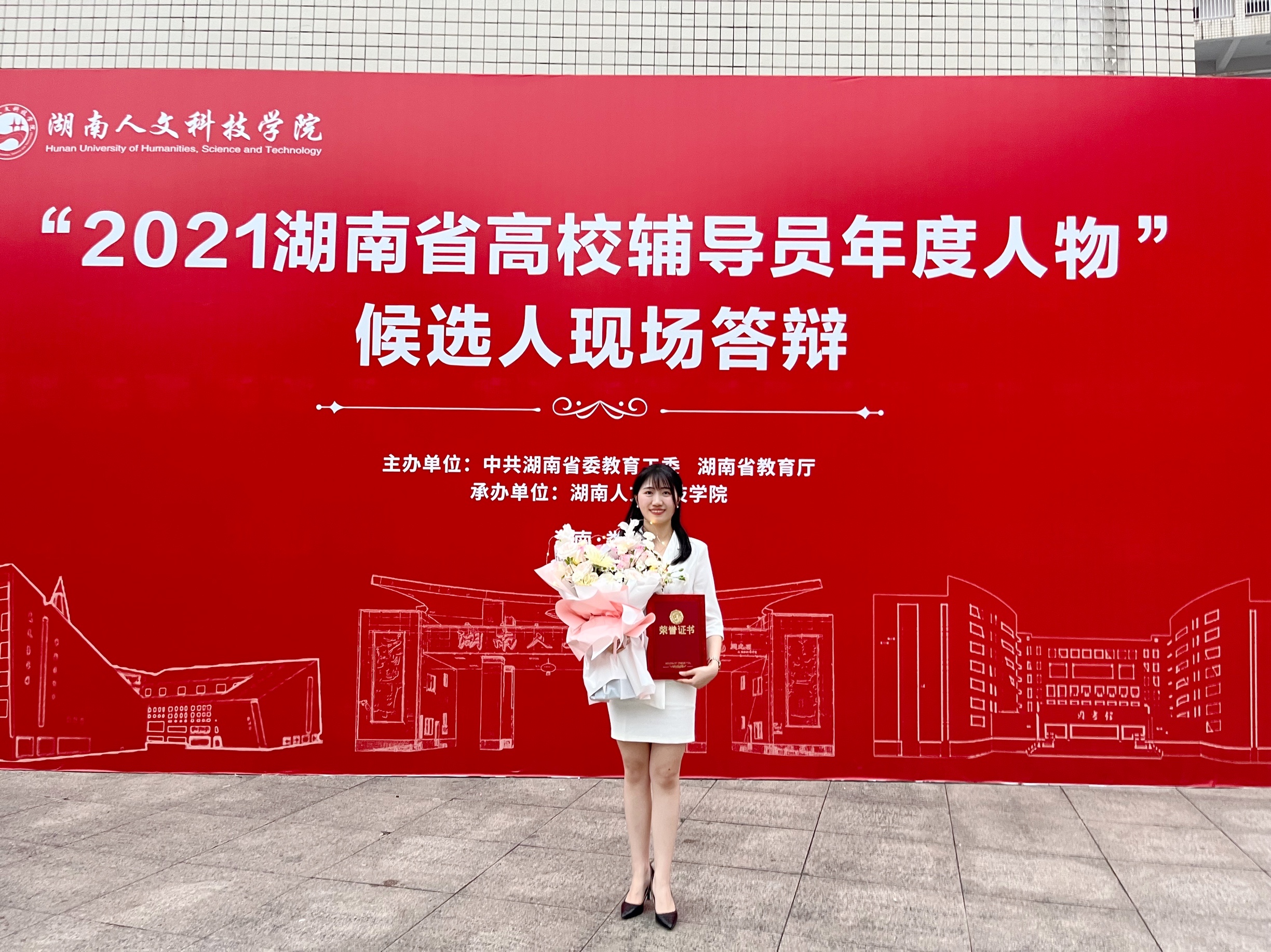 近日,由省委教育工委、省教育厅举办的“2021年湖南省高校辅导员年度人物”答辩评选活动结果揭晓,爱体育网页版在线登录彭凡思以《“凡”心所向,当学生身边的“小红书”》为主题,针对学生的思想政治教育工作,分享了她的育人目标、育人思路和育人实效。凭借其扎实的理论功底、丰富的实践经验和良好的心理素质,获得了评委们的高度肯定,荣获“2021湖南省高校辅导员年度人物”。