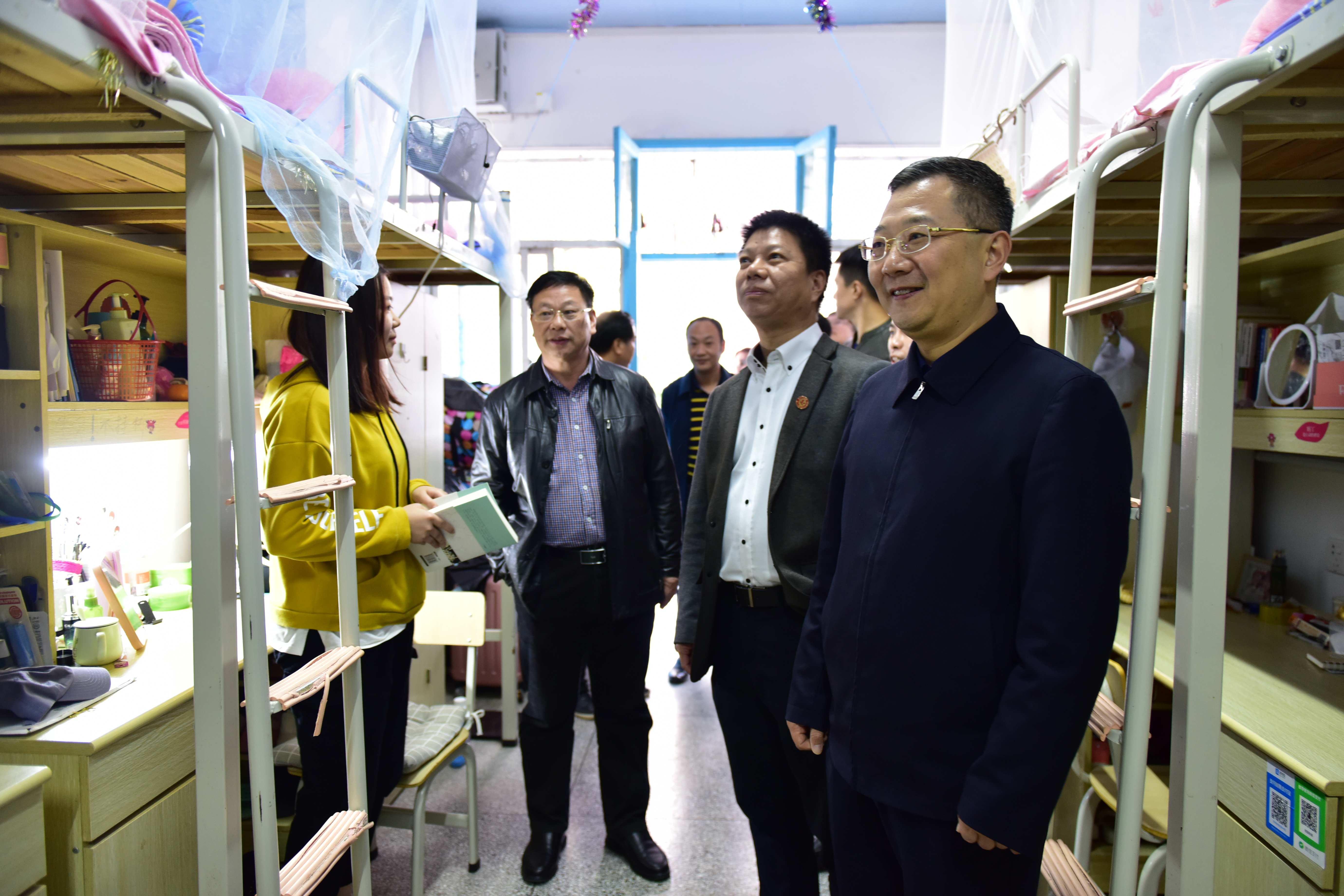 会上,双方还就宿舍管理、基础设施建设、校园交通等方面进行了深入交流。王刚一行还实地考察了创新创业学院、传媒学院、学生公寓等。