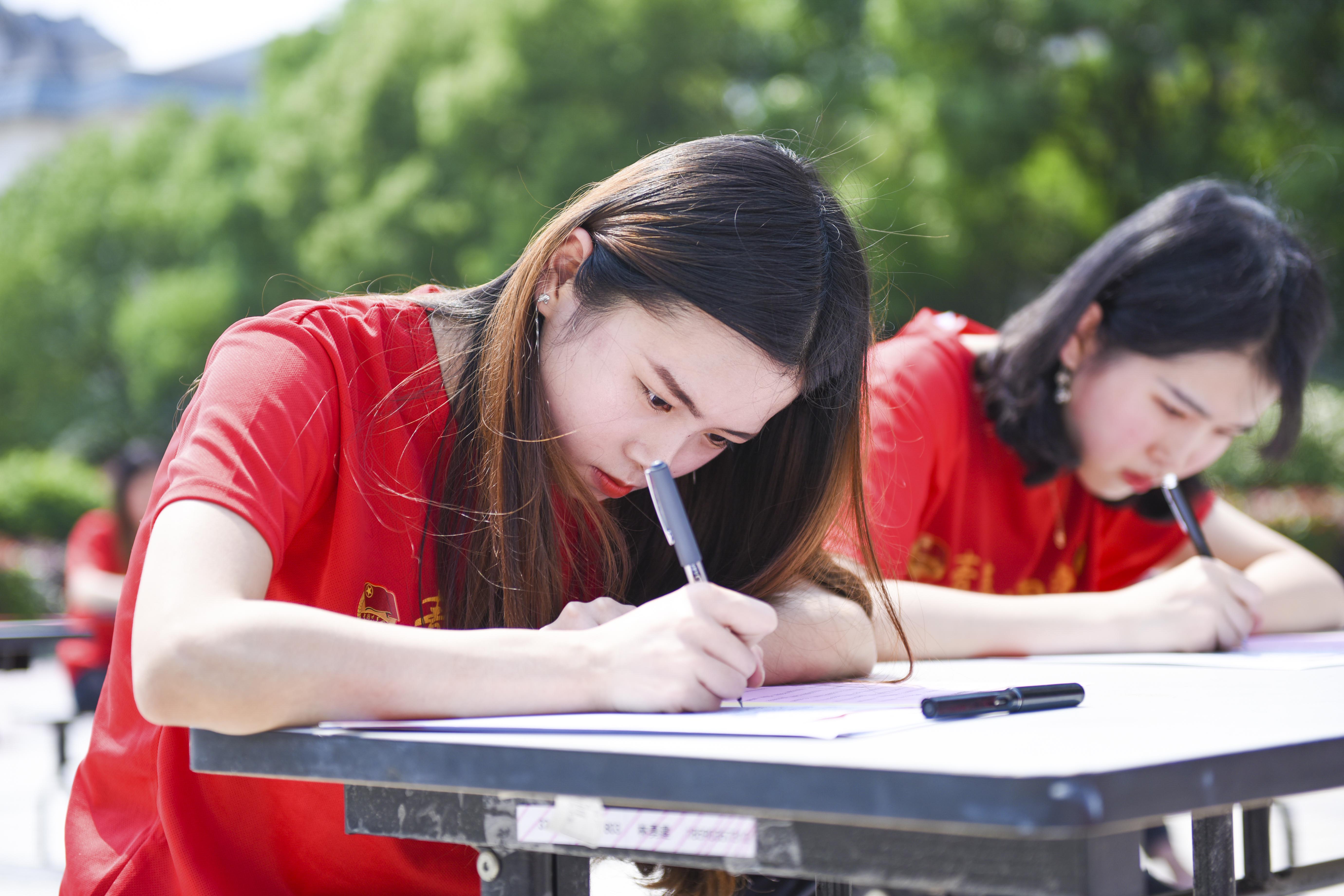 比赛分硬笔书法和软笔书法,参赛选手们泼墨挥毫,一展风采,围绕主题书写出不同风格的作品。比赛现场,选手们统一身着印有“青春心向党,建功新时代”的服装专心致志,尽情挥洒。“淡泊明志宁静致远,诗书启后勤奋传家”“爱国 民主 科学 进步”等一幅幅书法作品跃然眼前,有的气势磅礴,生动灵逸,有的苍劲古拙,韵味高雅,有的则行云流水,随意洒脱。在比赛的同时,书法家们为同学们题写“爱国、进步、民主、科学”“担当有为”“情理兼修”等一幅幅“五四励志帖”,现场展示书法艺术,笔走龙蛇、气韵流畅,吸引不少人驻足观看。