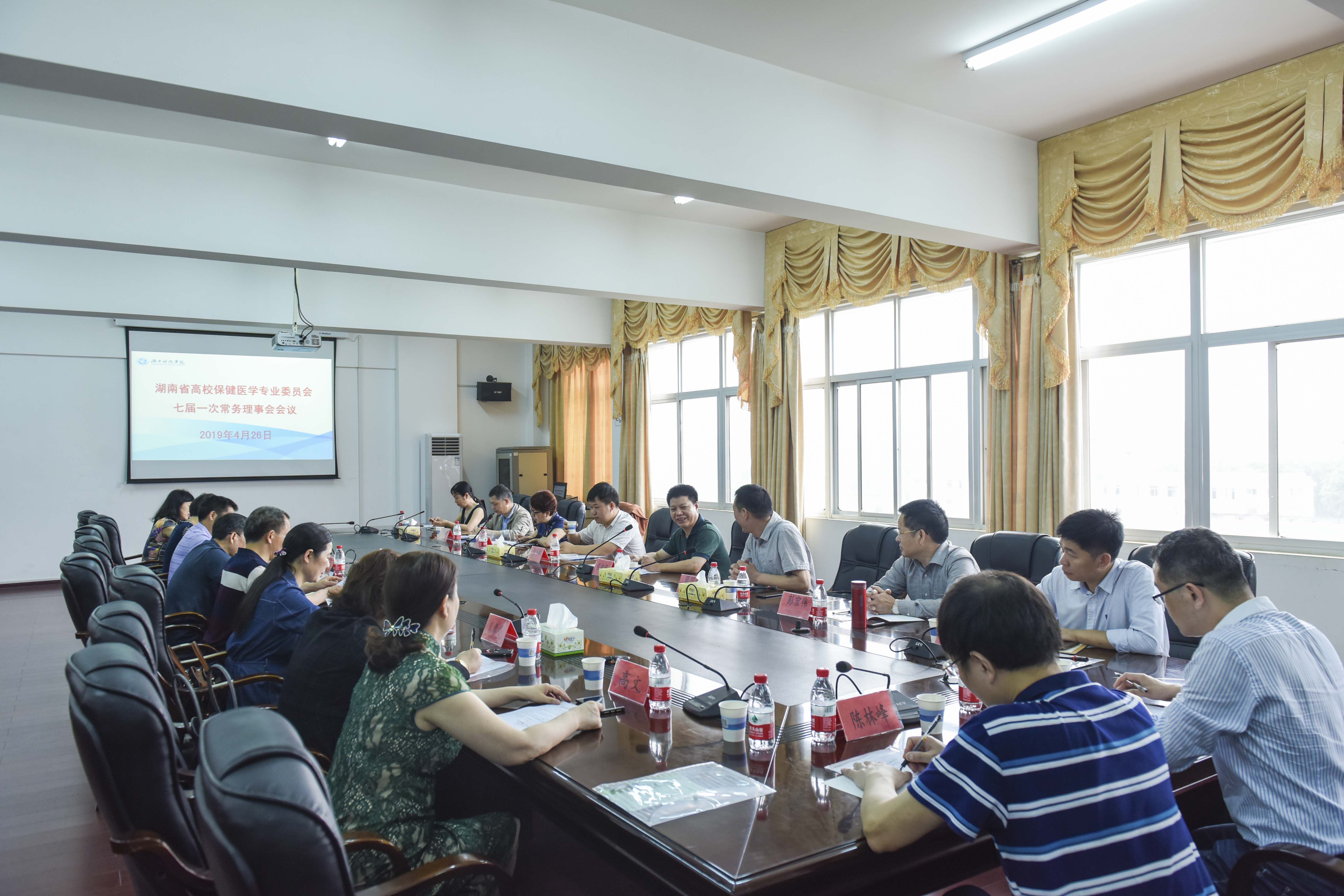本网讯   4月26日上午,省高校保健医学专业委员会七届一次常务理事会会议在我校召开。副校长程智开,湖南省教育厅体艺处科长张志敏,专业委员会常务副理事长、湖南师范大学医院院长周国强以及来自全省15所高校医疗机构和相关单位专家和领导20余人参加会议。会议由周国强主持。