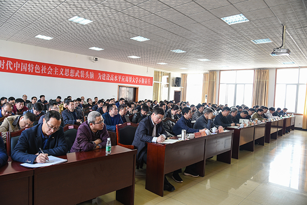 本网讯 3月20日上午,2019年全省教育系统全面从严治党工作视频会议暨警示教育大会召开。我校全体在校校领导、党委委员,纪委委员、全校中层干部,纪委监察处全体人员,党政办公室、党委宣传部、党委组织部、人事处、计划财务处、基建处、后勤服务总公司、采购中心副科级以上干部等参加会议。