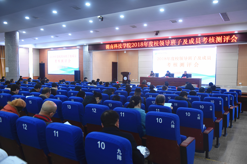本网讯  1月18日上午,学校领导班子和领导干部年度考核述职测评会在潇湘大讲堂举行。省委教育工委组织部副部长黄星亮、省委组织部干部四处干部周凯兴到会指导,校党委书记、校长曾宝成,全体校领导、中层干部、民主党派负责人、“两代表、一委员”和基层群众代表参加。会议由校党委副书记唐艳明主持。