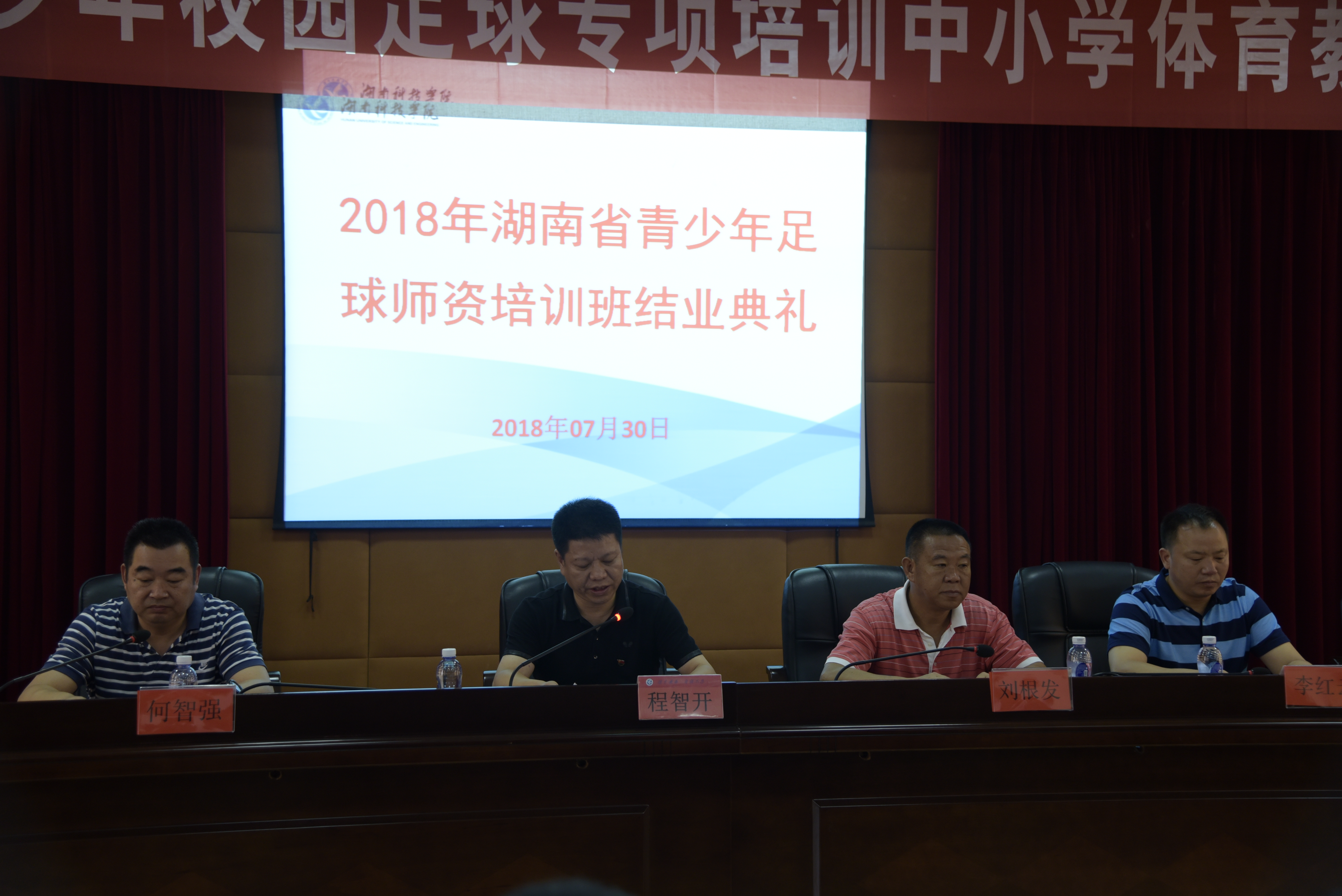 副校长程智开出席结业仪式并颁发优秀学员荣誉证书,在会上致词希望参训的老师能将学习到的知识和经验带回到本单位投入到工作实践中去,80位学员就像80颗种子,在今后自身的工作岗位上生根发芽,携手共筑中国足球梦的美好未来。