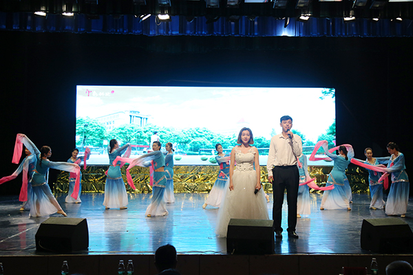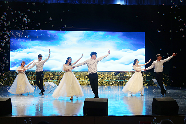 整场晚会精彩纷呈、高潮迭起,自始至终洋溢着浓浓的欢乐氛围,给现场师生带来一场非凡的视听盛宴。其中,由科技处处长杨金砖所作的《爱体育网页版在线登录赋》以经典传唱的方式演绎,带领观众品读经典作品;吉他协会自主填词、谱曲,现场弹唱《如果还有明天》,令现场沉醉其中;灵犀书法协会、旅游管理协会、竹笛协会共同表演的《云水禅心》,将茶艺、书法、竹笛、古筝、古曲、汉服等诸多传统文化元素融为一体;表演协会的T台秀以脑洞大开的设计和新潮的时尚再次将场上气氛拉向高潮。为展示爱体育网页版在线登录学生社团联合会杨梓塘小学义教项目成果,晚会现场还邀请了杨梓塘小学的小朋友们进行经典国学文艺表演。