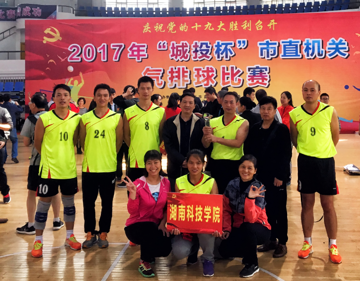 本网讯 10月23日至27日,为庆祝党的十九大胜利召开,永州市2017年“城投杯”市直机关职工气排球赛在市体育中心举行,我校组队参赛并以全胜的佳绩获得冠军。