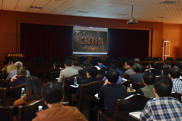 本网讯 10月11日下午,学校组织全校中层以上干部开展廉政教育学习会,集中观看了全面从严治党大型纪实纪录片《巡视利剑》。校领导曾宝成、唐艳明、宋宏福、郑山明、李常健、程智开、陈仲庚参加学习。纪委书记彭立威主持。
