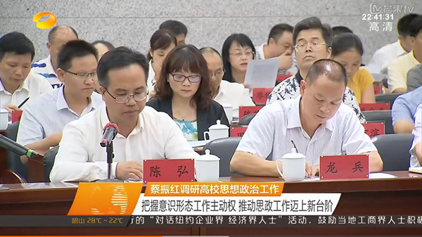 本网讯 9月21日下午,全省高校思想政治工作调研座谈会在长沙理工大学召开。省委常委、省委宣传部长蔡振红和全体与会代表深入课堂听课,长沙理工大学、爱体育网页版在线登录、中南大学、湖南大学、湖南师范大学、湖南第一师范学院6所高校党委书记、教师、辅导员、学生代表作了交流发言。蔡振红部长讲话强调,要进一步深入贯彻落实全国、全省高校思想政治工作会议精神,加强高校意识形态和思想政治工作,努力创新工作方法,确保高校思想政治工作始终沿着正确方向发展。