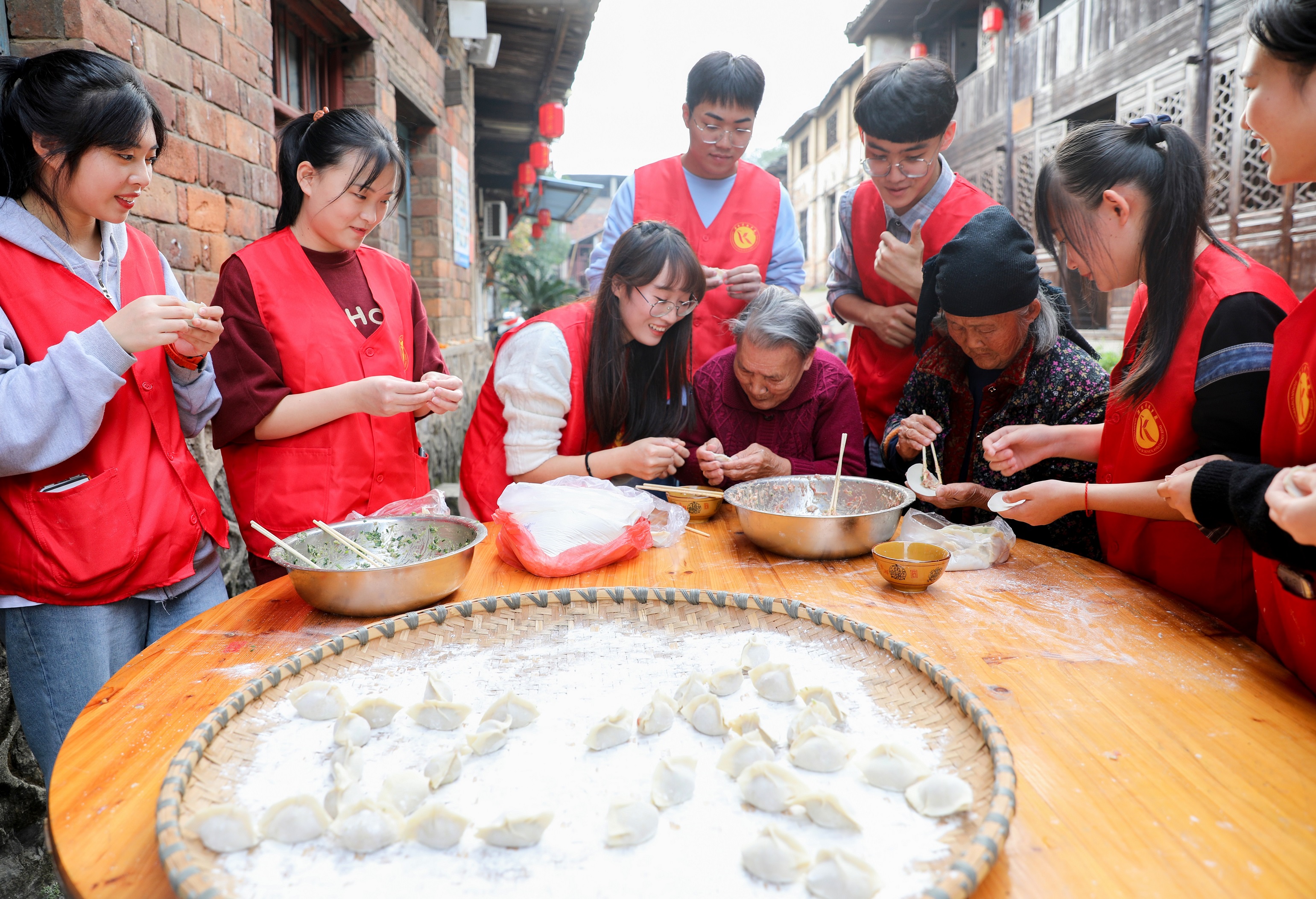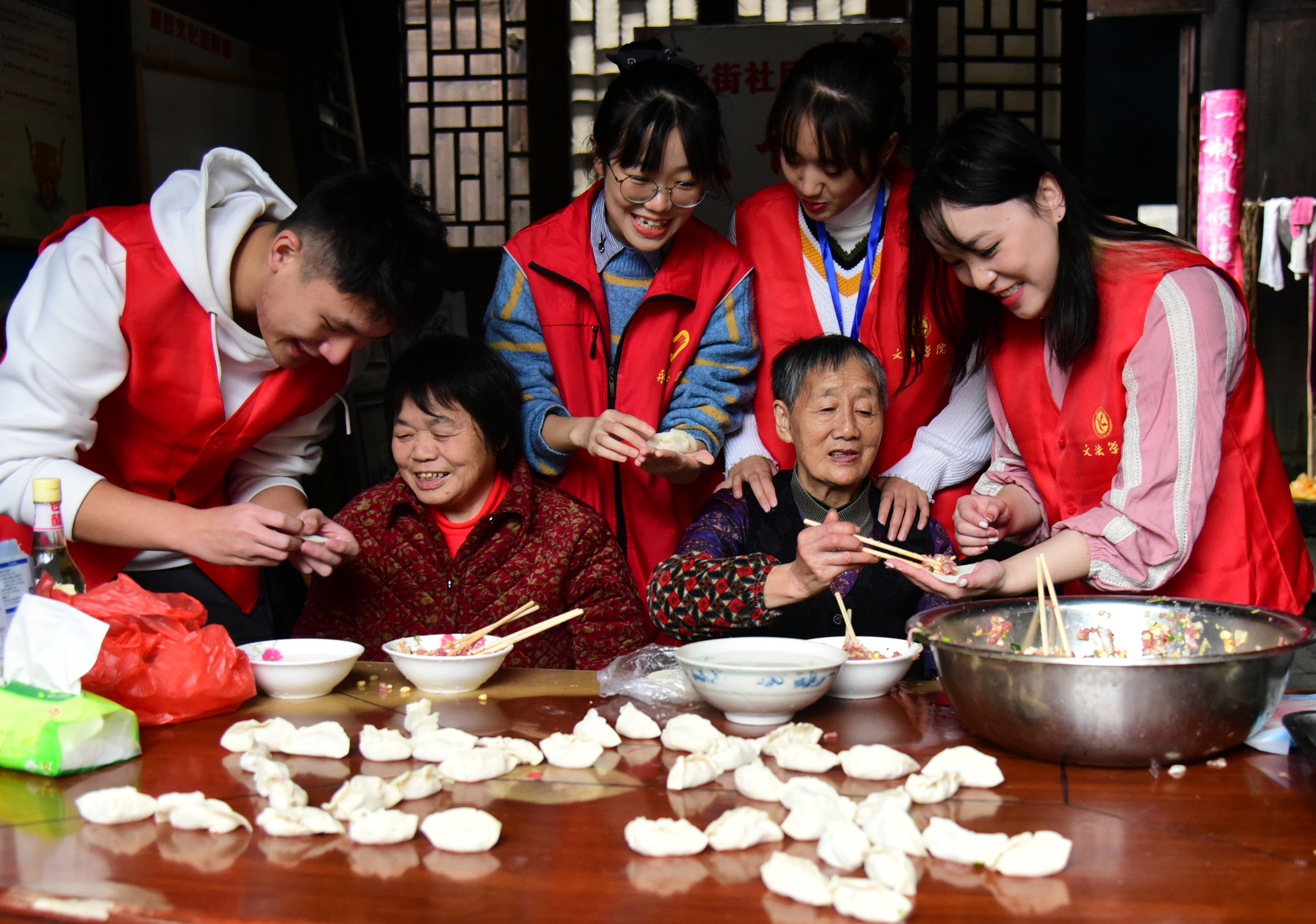 本网讯 “爷爷奶奶,孩子们又来看你们了!”11月14日,爱体育网页版在线登录文法学院教师欧阳智超带领的学生志愿者团队又一次来到湖南永州柳子街空巢老人家中,和老人们一块包饺子,唠家常,两手一包一捏一挤,一个圆嘟嘟的饺子就从志愿者手中出现,水烧开,饺子下锅,寒冷的街道,饺味飘香……