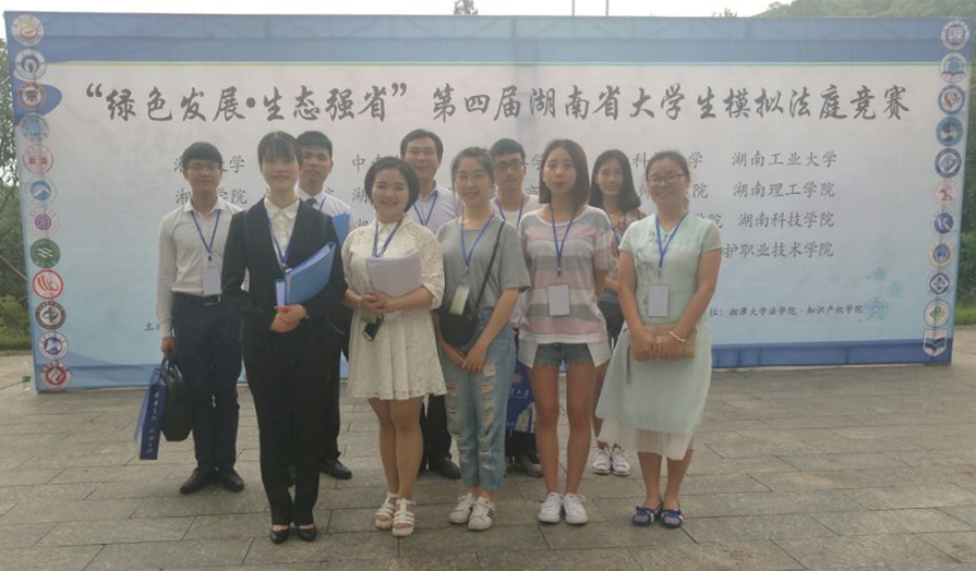 本网讯(通讯员 代军垒)6月3日至5日,由省教育厅和省环保厅共同主办,湘潭大学、法治湖南建设与区域社会治理协同创新中心承办的第四届湖南省大学生模拟法庭竞赛在湘潭大学举行。本次竞赛以“绿色发展、生态强省”为主题,中南大学、湖南大学、湖南师范大学、湘潭大学等省内23所高校参赛,我校模拟法庭代表队获得了团体三等奖,法学1401班的王诗瑶获得优秀辩手奖。