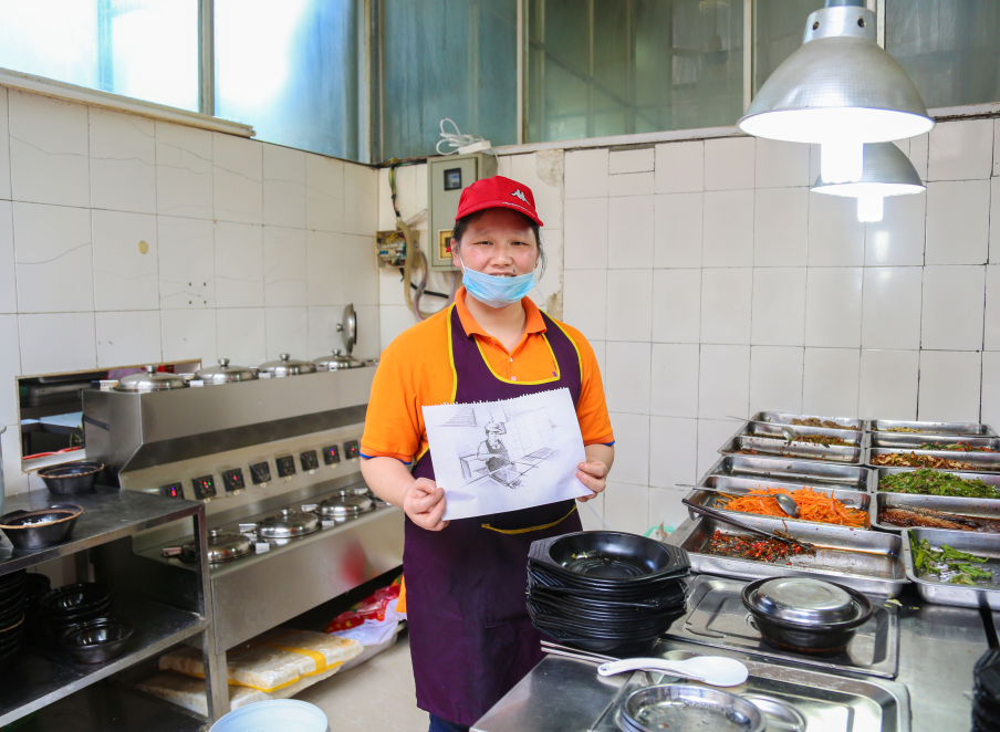 为了感激校园劳动者们的辛勤付出,同学们为校园劳动者精心绘制了一幅又一幅他们自己专属的素描画并赠与他们,用光和影记录下了这一温暖的瞬间。画图里的劳动者目光炯炯有神,栩栩如生,举手投足间的每一个动作都不禁让人想起平日里他们辛勤劳作的场景。”谢谢同学们!谢谢大家还记得我们,都放假了还不忘为我们送上这样好看的礼物,这个节日,我很开心!”松园食堂蒋阿姨有些激动地说。蒋阿姨的孩子是一名正在备战高考的高三学子,她说:“每当看到来打饭的同学就向看到自己的孩子一样亲切,为大家多打点儿好吃的。”负责校园杂草清理的曾师傅每天要工作八个多小时,当他卸下手套的那一刻记者愣住了。在他厚厚的手掌上,粗糙的老茧是那么的明显。曾师傅腼腆地笑了笑说:“没事儿,你胸前戴着的是你的工作证,我这手上的茧子也是我的工作证嘛!”