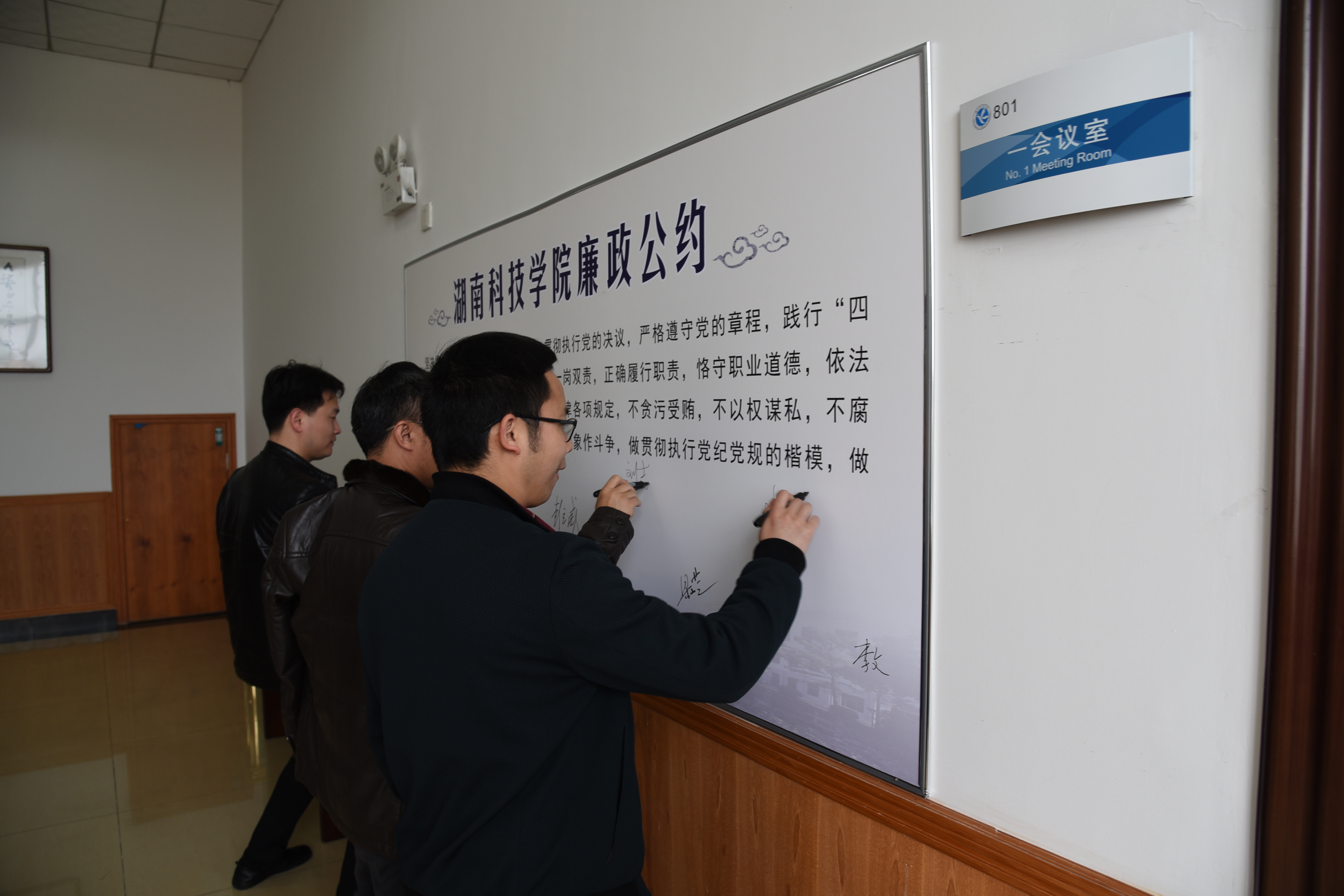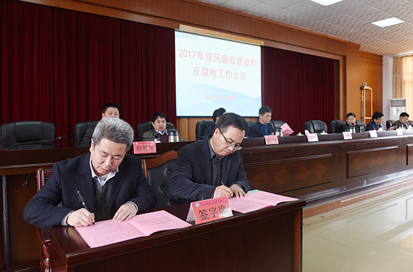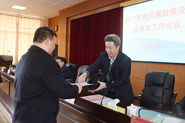 会议正式开始前,全体与会人员开展了《爱体育网页版在线登录廉政公约》签名活动。会上,校领导班子成员分别向党委书记陈弘同志签订并递交了《党风廉政建设目标管理责任书》,各二级单位党政负责人分别向分管校领导签订并递交了责任书。