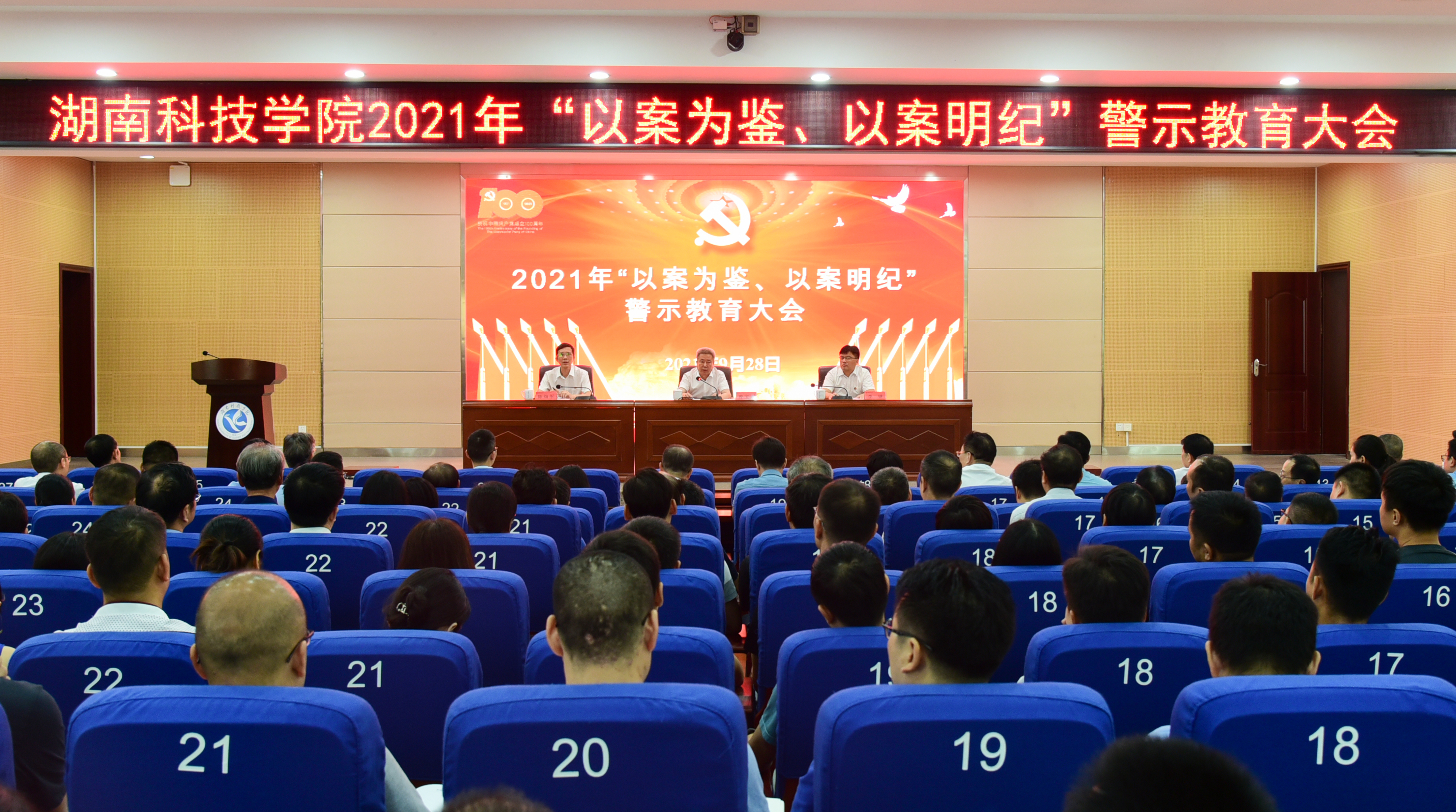 本网讯(记者 陈丽杰 周芳梅)9月28日下午,学校在潇湘大讲堂举行2021年“以案为鉴、以案明纪”警示教育大会。党委书记曾宝成,党委副书记、校长李钢,校领导宋宏福、李常健、吴小林、何福林、陈灿军、郑银芳、何海,组织部部长杨涛出席会议。