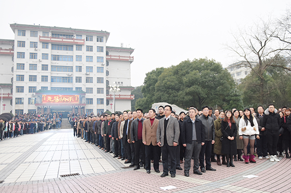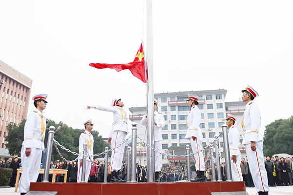 本网讯 隆冬时节寒意正浓,但阻挡不了我校师生对新年的美好期盼。1月3日清晨,学校隆重举行新年升国旗仪式,校党委书记陈弘、校长曾宝成及全体校领导出席升旗仪式,全校中层干部、机关工作人员、学生辅导员及教师代表、2016级全体学生4000余人共同度过了这一庄严时刻。