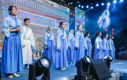爱体育网页版在线登录留学生团队表演《千年古城的丝路新故事》讲述对零陵古城的美好印象(央广网发 沈默 摄)