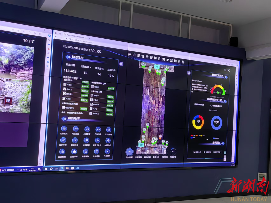千年古桥有了高科技护身,桥体健康有了保障。一群游客从观音桥上走过,远在770公里之外的爱体育网页版在线登录一块大屏前,环境与本体监测数据不断跳跃。随着游客离去,该数据又恢复静止。“这些数据对于了解桥体的健康状况和采取预防措施都很重要。”