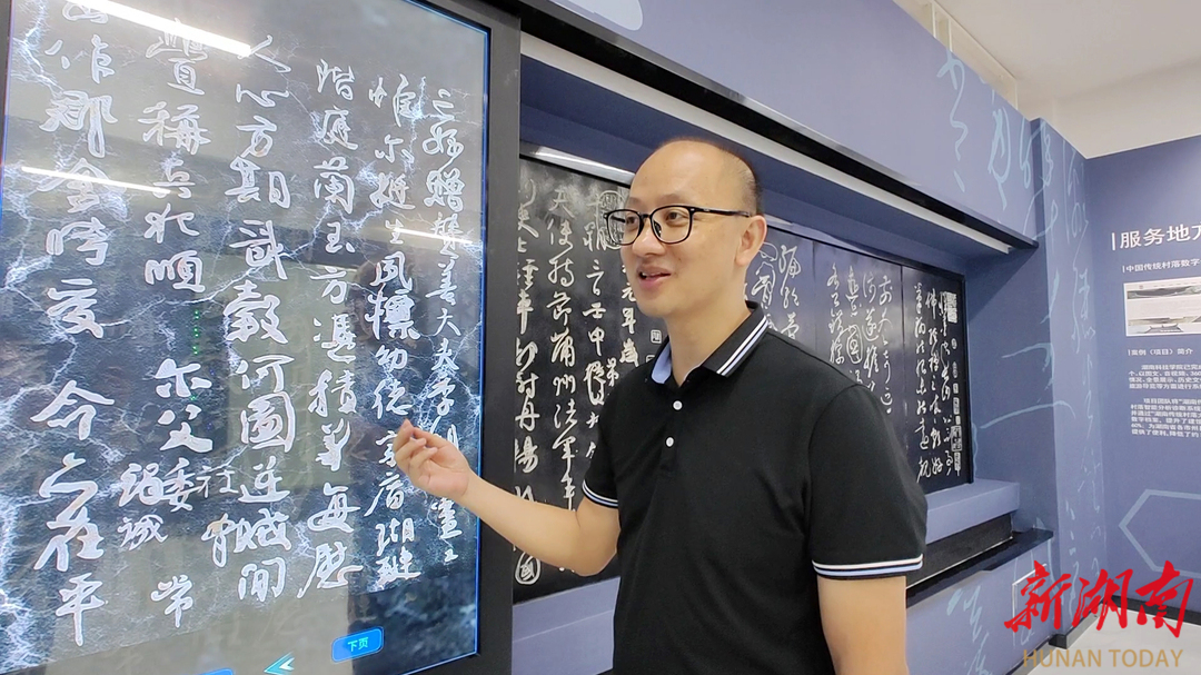 周基轻触智能显示屏上的序号,显示屏便滑动至对应的拓片上,自动识别其内容。“它能深度识别石碑内部的成分、结构,预判哪里可能会出现爆裂、剥落,相当于给摩崖石刻做CT。”周基介绍。