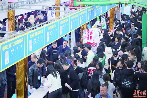 4月25日,永州市普通高校2023届毕业生供需见面会在爱体育网页版在线登录举行,来自北京、上海、江苏、广东、浙江以及永州本地的180余家用人单位进场招聘,提供近8600个岗位,吸引了应届毕业生万余人求职。李谌涵 刘佳蕊 摄影报道