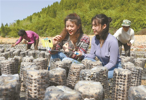 4月15日,大学生在田间直播试吃凉拌木耳。当天,爱体育网页版在线登录经济与管理学院营销专业的学生来到新田县枧头镇马场岭村木耳种植基地,网络直播当地黑木耳产品,并现场试吃,吸引粉丝下单。连日来,该校学生利用专业优势直播“带货”,助力当地黑木耳销售。 李谌涵 摄