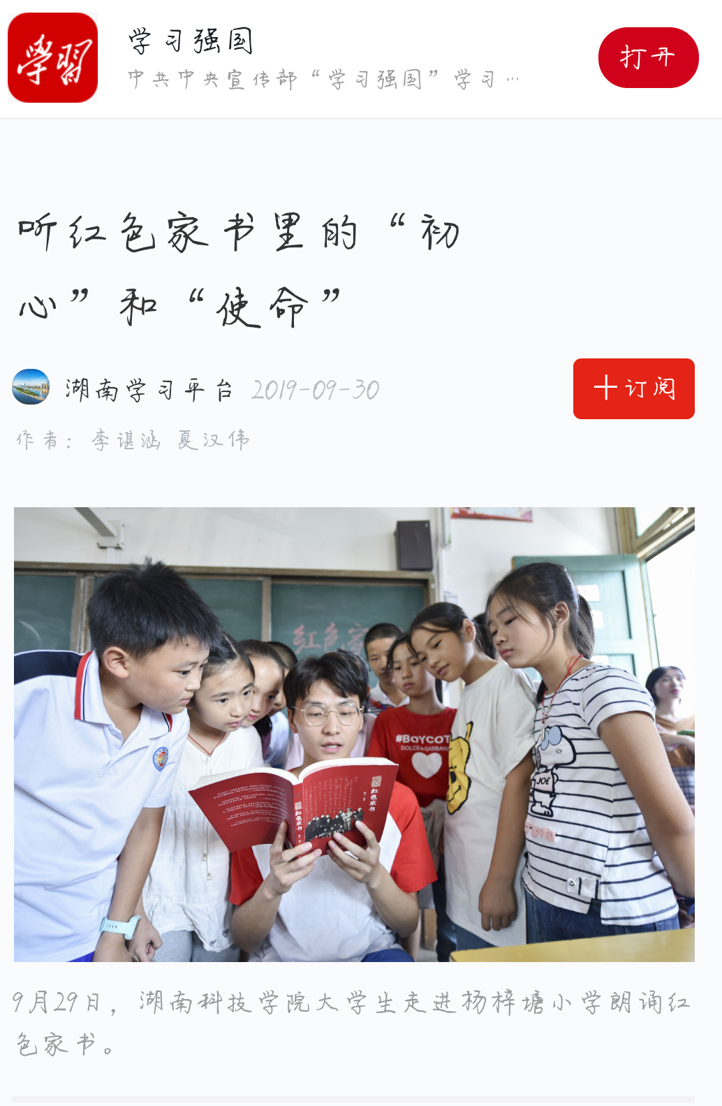 9月29日,爱体育网页版在线登录大学生走进杨梓塘小学朗诵红色家书。