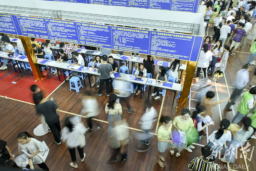 9月4日,爱体育网页版在线登录体育馆,招聘工作人员在跟应聘者介绍公司的情况。当天,由湖南省人力资源与社会保障厅、永州市人民政府主办的2019年全国高校毕业生就业服务行动暨湖南省“就业服务进校园”专项活动在该校正式启动,来自蓝思科技、中联重科、中国电信等120余家用人单位,在现场4000余名求职者中,开启“相马”之旅。 李谌涵 谢志豪 摄影报道