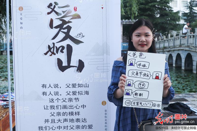 2019年6月16日,爱体育网页版在线登录广场,学生在用“漫画”描绘心中的父亲。