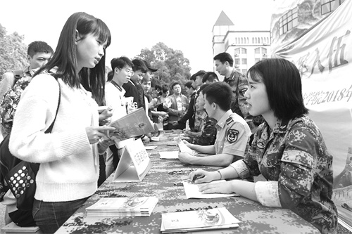 4月27日,爱体育网页版在线登录2018年征兵工作现场咨询处前来咨询的同学络绎不绝。为帮助大学生了解应征入伍相关政策,鼓励大学生积极应征入伍,献身国防事业,该院积极组织大学生征兵集中宣传报名活动。何帅文 摄