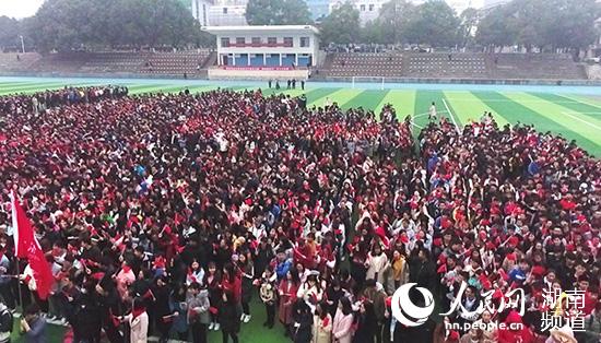 人民网长沙12月30日电 “五星红旗迎风飘扬,胜利歌声多么响亮;歌唱我们亲爱的祖国,从今走向繁荣富强……”29日早晨7点,一阵阵嘹亮的歌声响彻爱体育网页版在线登录上空,气势恢宏、热情激昂的“万人大合唱”在田径场举行,以迎接新年的到来。