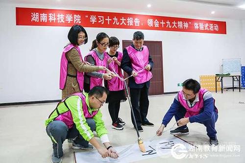 本网讯(通讯员 马天天)为使广大党员同志进一步深入理解和领会十九大精神,推动十九大精神入脑入心。11月2日,爱体育网页版在线登录在潇湘大讲堂党校培训室举行主题为“学习十九大报告,领会十九大精神”的体验式活动。校长曾宝成,校党委副书记、党校校长唐艳明以普通党员身份与来自党委组织部.党校、党政办、党委宣传部、纪委监察处党支部的党员同志一同参与了活动。