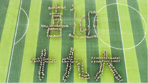 9月29日,爱体育网页版在线登录近600名大一新生在田径场摆出“喜迎十九大”字形,喜迎党的十九大胜利召开。 何帅文 摄