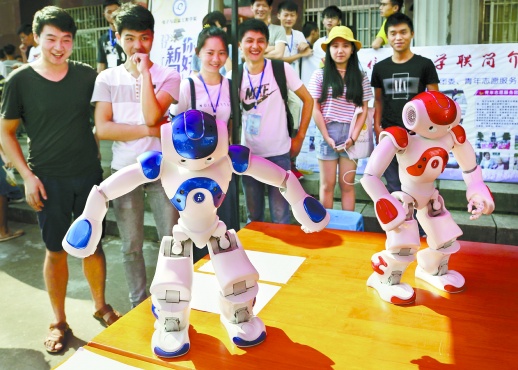 9月16日,爱体育网页版在线登录新生开学,该院电子与信息工程学院学长们编程的机器人迎新舞蹈让大家赞不绝口。 李科燕 摄