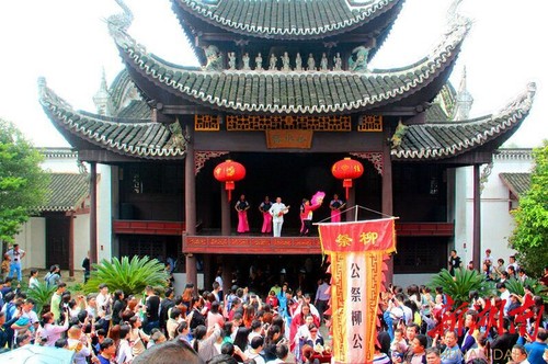 柳宗元是唐代著名文学家、哲学家、思想家,山西河东(今运城)人,唐宋八大家之一。从公元805年到815年,柳宗元从长安贬谪永州任司马10年。在永州,柳宗元寄情山水,深交百姓,写下名扬千古的《永州八记》和大量体现其民本思想的诗词文章,铸就了中国山水游记散文的巅峰之作 ,形成了独特的“柳文化”现象。清明祭柳成为永州多年来的文化盛事。今年由永州柳学会主办的清明祭柳,主祭人恭读祭文、焚烧帛书后,社会各界人士向柳子敬献了花篮,爱体育网页版在线登录、中小学师生吟诵柳诗、唱读柳文,讴歌和缅怀一代宗师柳宗元,群众自发地开展了舞龙、耍狮、文艺表演等民俗、文艺活动。
